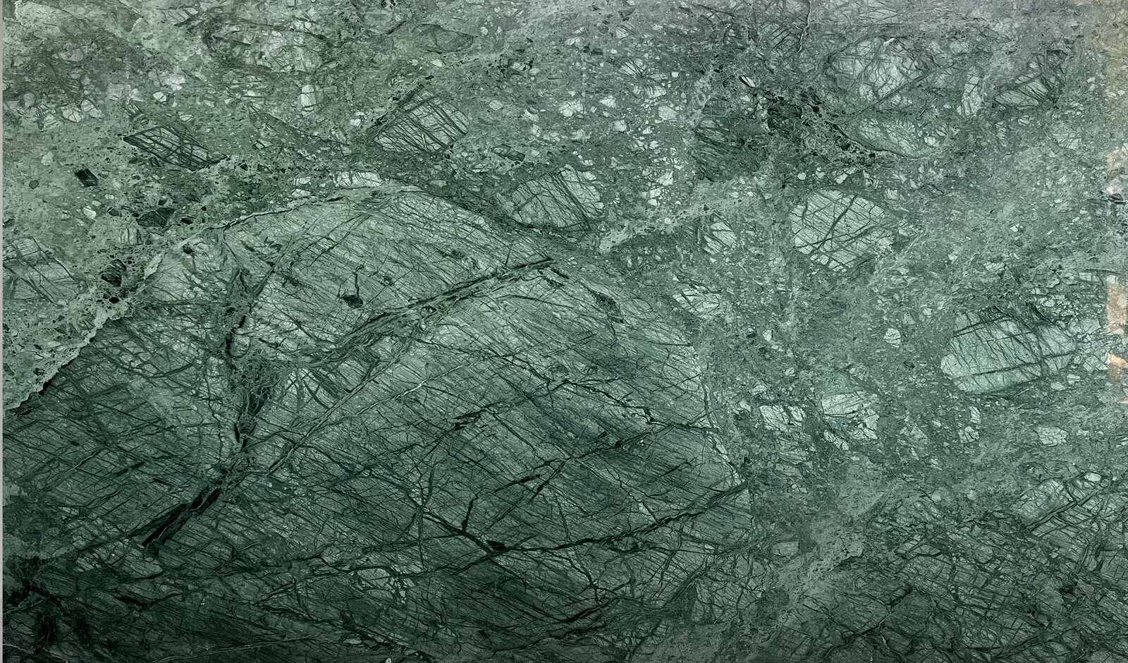 Prada Green features deep green tones contrasted by expansive, expressive veining. Its composition resembles an abstract natural landscape, delivering striking individuality.